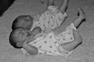 Laura and I realized fast that our boys may be dressed the same at times since they are the same size and cute boy clothes are SOOOO hard to find. When they first met each other, Jude came over in an outfit that Sebastian had--so we decided to have some fun with it! (Even their body language was the same!)